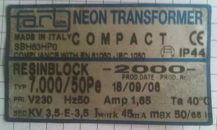 Transformatoarele din neon electromagenetice sunt concepute pe o structura singulara in concordanta cu EN61050; acest aspect ii ofera viata prelungita si stabilitate in functionare pe perioade indelungate. Corpul din rasina este turnat sub vacuum, realizat din rasini epoxidice speciale cu granule de siliciu, oferind protectie in orice conditii de vreme. Capacul de protectie este prevazut cu contact bipolar care rezolva probleme de siguranta cand capacul este scos.