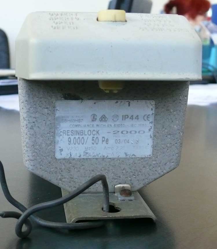 Foto sus, transformator 10.000V / 100mA , sunt rar utilizati, nu avem pe stoc un traf echivalent.