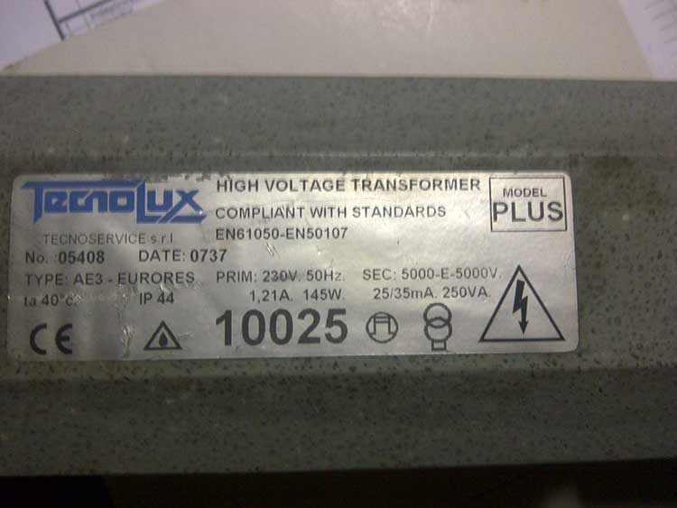 Foto sus, transformator 10.000V / 25mA , echivalent ALS235-10025